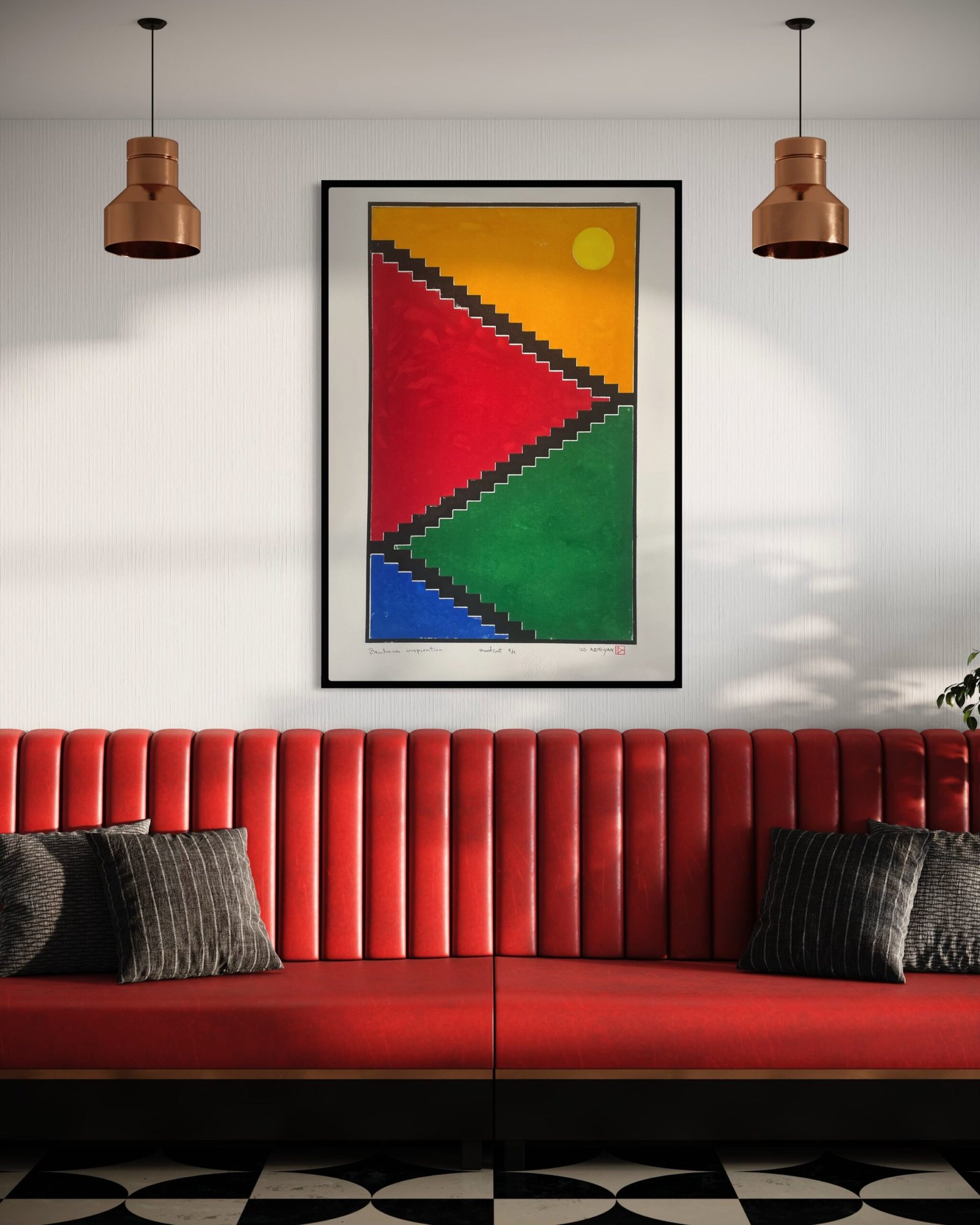 The artist’s reflection on the road we all walk, sometimes we stop, then we go on. We can go in two directions. A reflection on the relationship between spirituality and physical existence, where the constructivist brutalist staircase symbolizes the body.